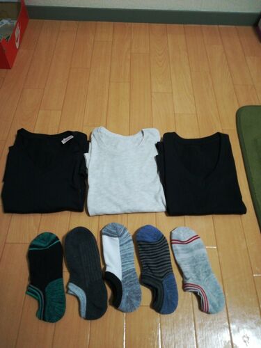久しぶりに服を買いました。 記憶を辿ると、 昨年9月に飛行機の乗り換え時間で訪れたオーストリアのウィーンでダウンジャケットを買って以来振りだと思います。 買ったのはこちら。 全部で1000円。 Tシャツ1枚198円、靴下5足で398円。 マジで安かった…